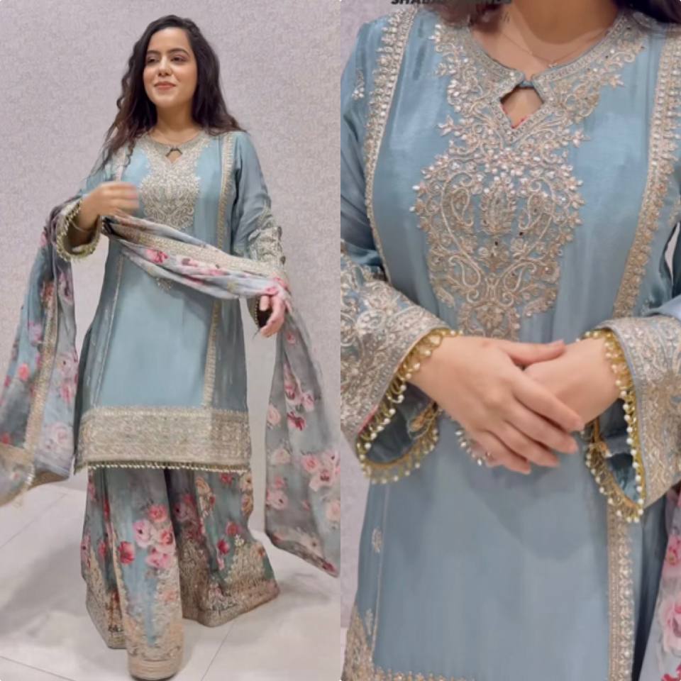 · Work :-Digital Print With Embroidery 3 mm Sequence & Coding Dori Work Lace Border