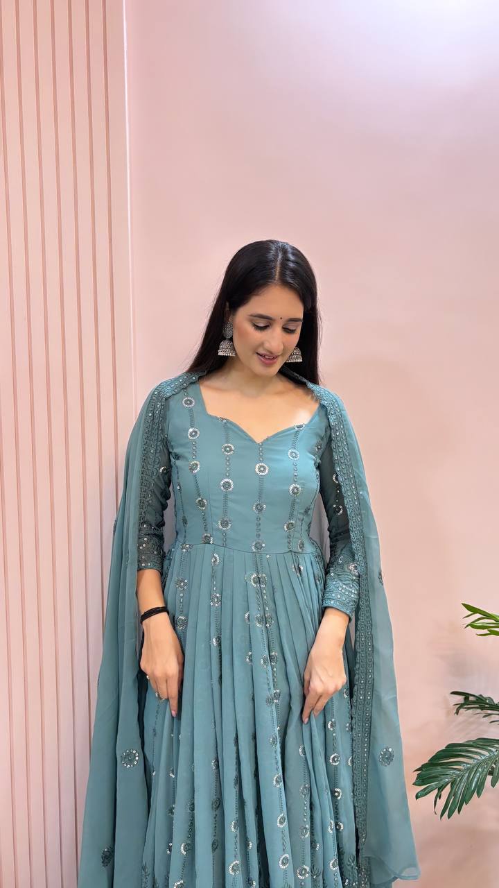 👗 *GOWN FABRIC* :-_FOX GEORGETTE WITH EMBROIDERY WORK WITH FULL SLEEVES_