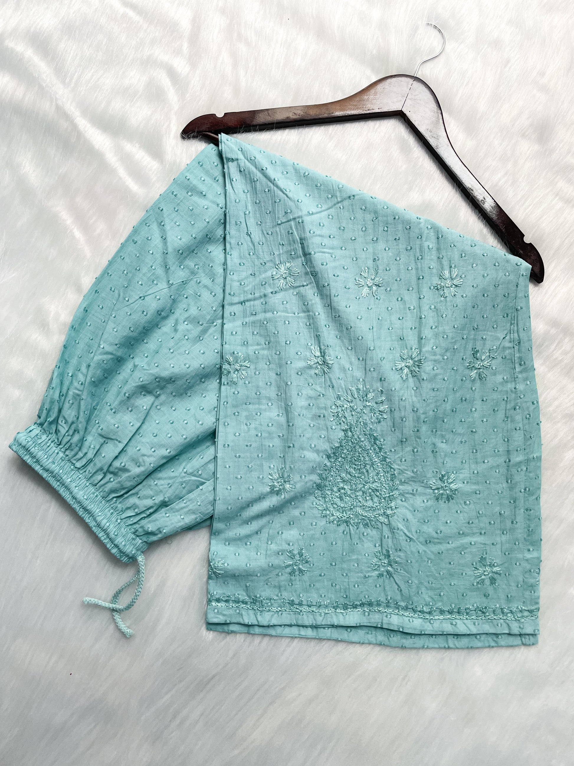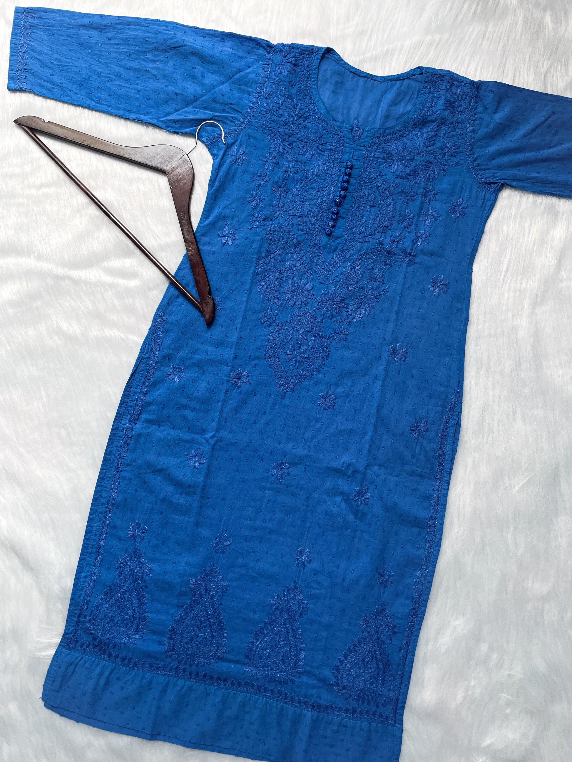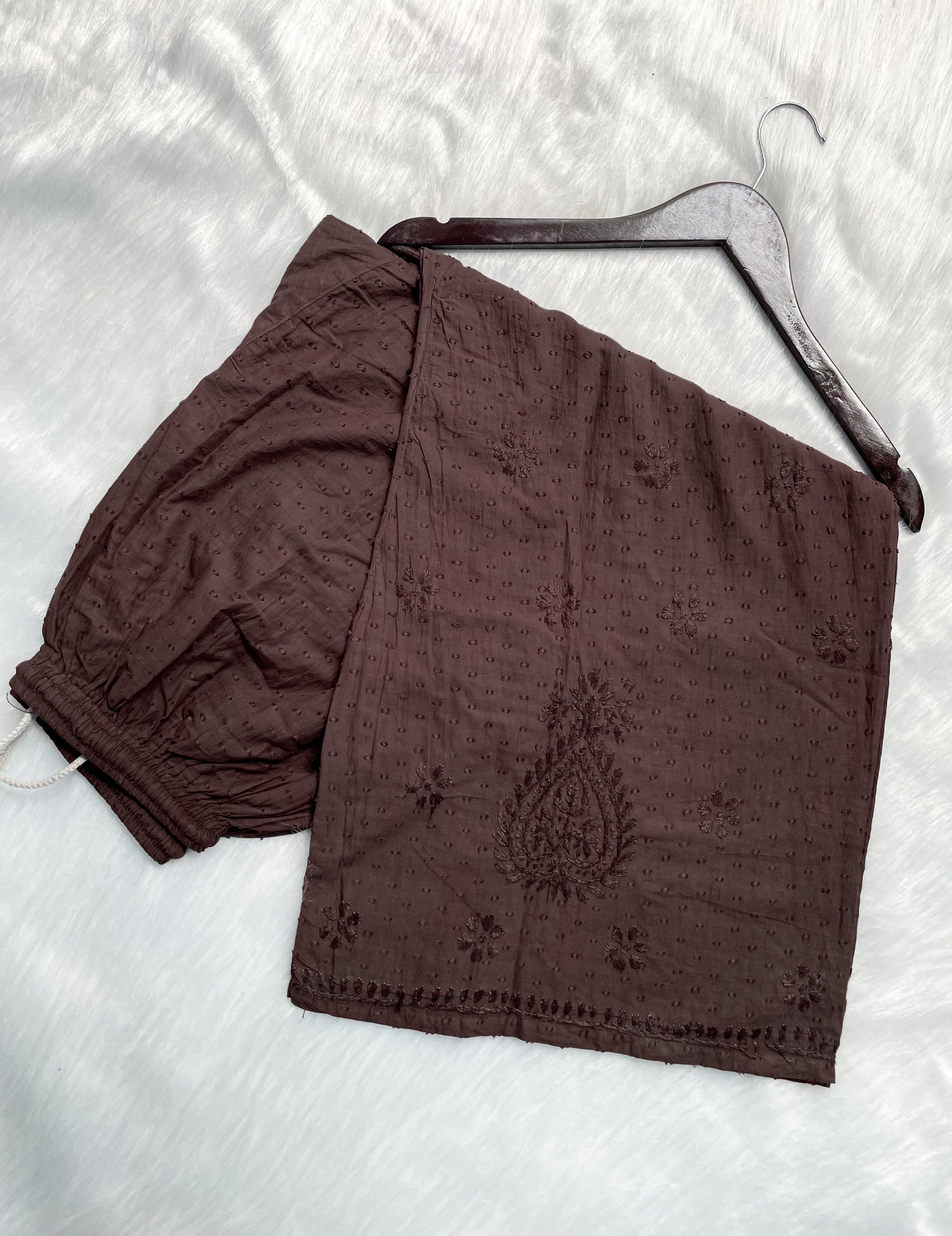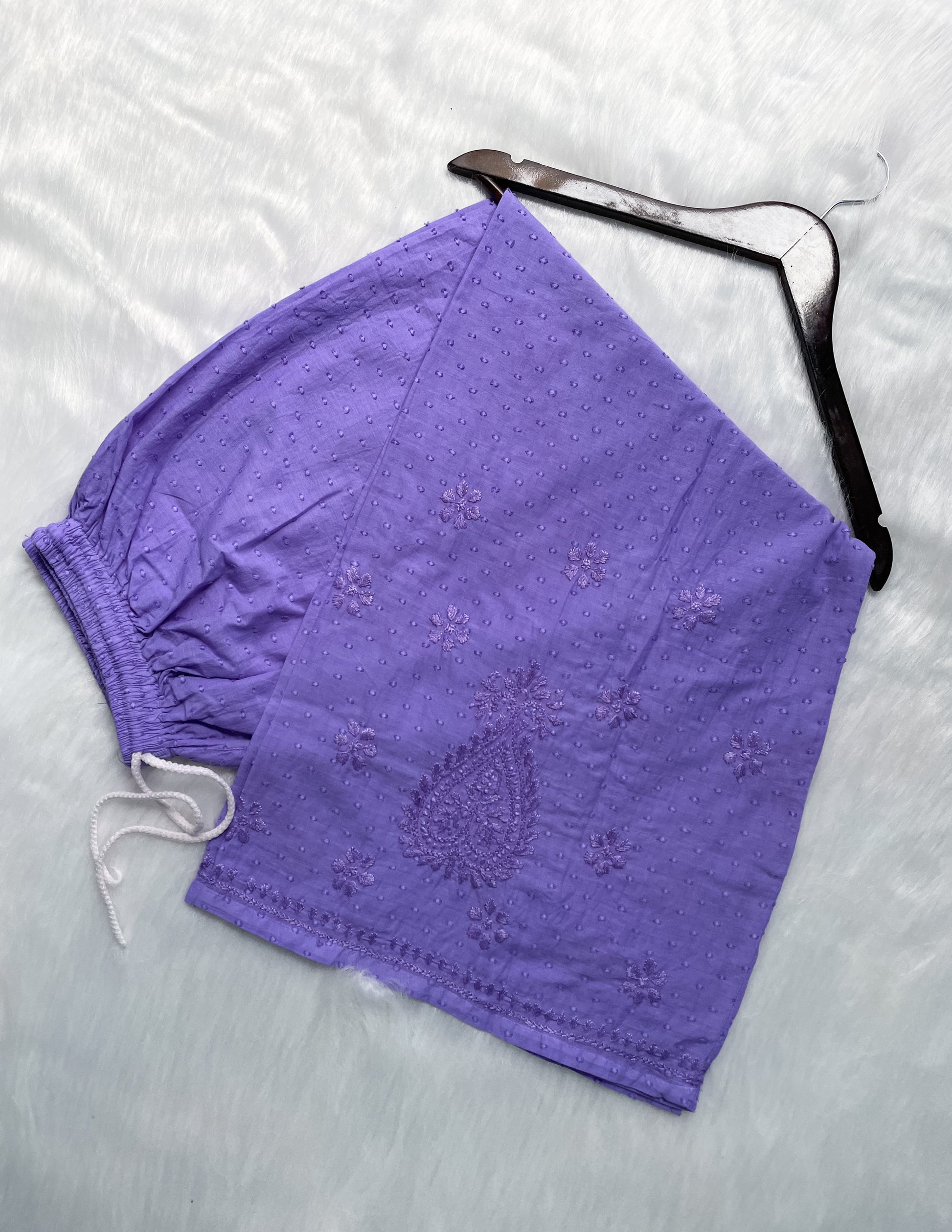 Handcrafted Dyed Lucknowi Chikankari Cotton Kurti, Palazzo & Dupatta Set