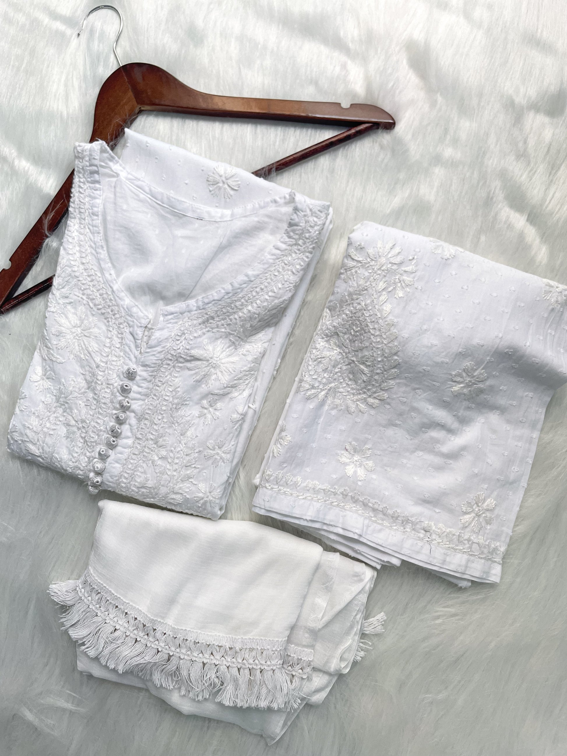Style Name: Chikankari Cotton Kurti Palazzo and Dupatta Set for Women